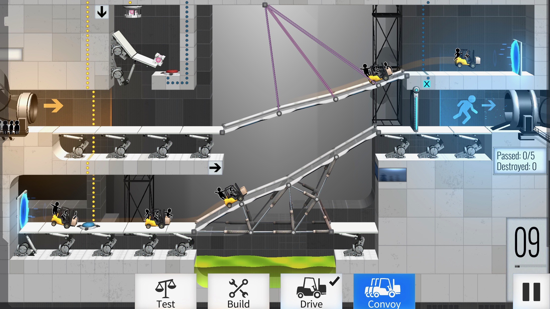 Before long, though, the game goes bonkers with sci-fi. Along with the portals, which have vehicles vanish from one point and appear elsewhere, there are various other elements to grapple with – all while wondering why, if these people can create portals, do they need bridges in the first place? Other than to be evil and drive you nuts figuring out how to make them, obviously.